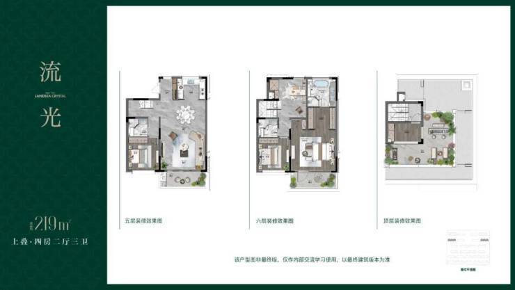 6层叠墅共计156套,建筑面积约207-264㎡