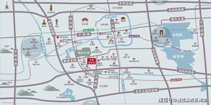 南侧约200m为南环高架出入口,双环线接驳苏州中环、G2和G15等主要交通干线。