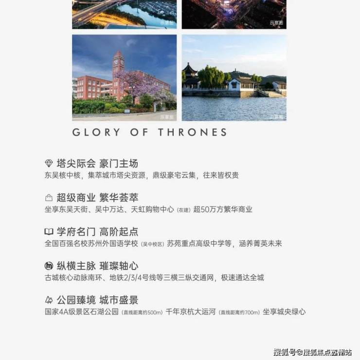 最强风口:苏州高速发展崛起五大核心区,是苏州的五大中心,主城东西狮山、古城、金鸡湖均已发展饱和,政府重磅布局南拓北进,东吴核心区以千年文脉底蕴、主城稀贵运河、湖景生态资源,苏州地理几何中心区位,发达的交通网络成为苏州下一个10年最强发展风口