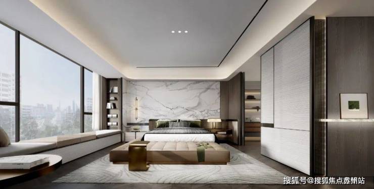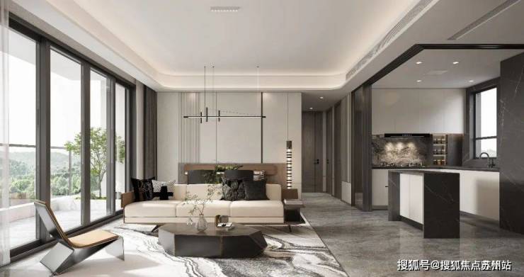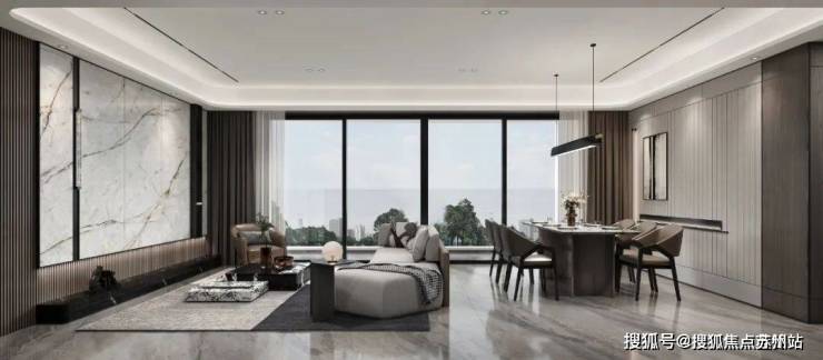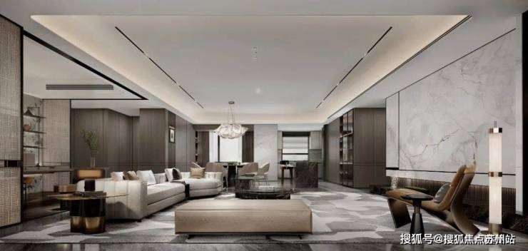 项目住宅强调先锋大宅的美学立面,遵循“形式追随功能”的建筑原则,保证大面采光、南北通透的户型布局。而一个有灵魂的空间,不仅可以从细节处看到生活的影子,感受雅奢栖居,无界共叙的调性;同样也可以通过空间中硬朗线条、尊贵的材料将空间的品质感、仪式感拉满,体味缱绻艺奢,以质为简的雅趣。