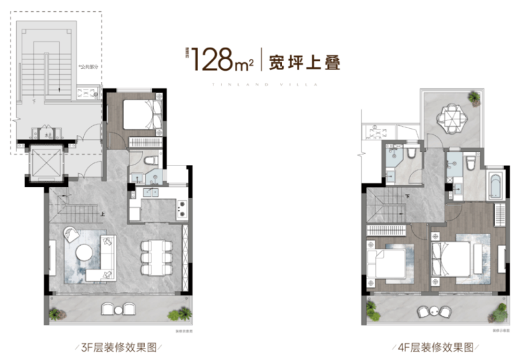 市面上绝大多数叠墅都是上中下三叠,而四季听澜只做 4层纯粹的上下叠产品。建面约128-140㎡的宽坪叠墅,一单元仅两户,独立入户,互不干扰,得房率与私密性远超市场同类产品,真正还原了墅居应有的尊崇感与独立性。