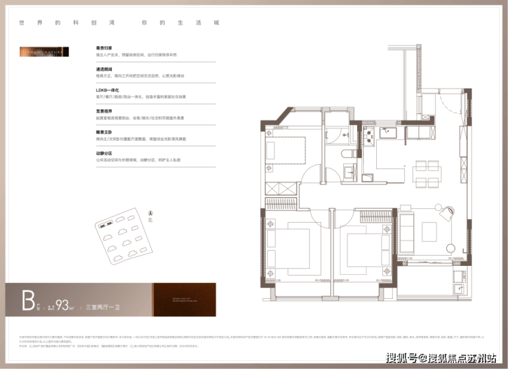 约93㎡、101㎡正三房户型均做到三开间朝南,采光与通风俱佳。以93㎡户型为例: