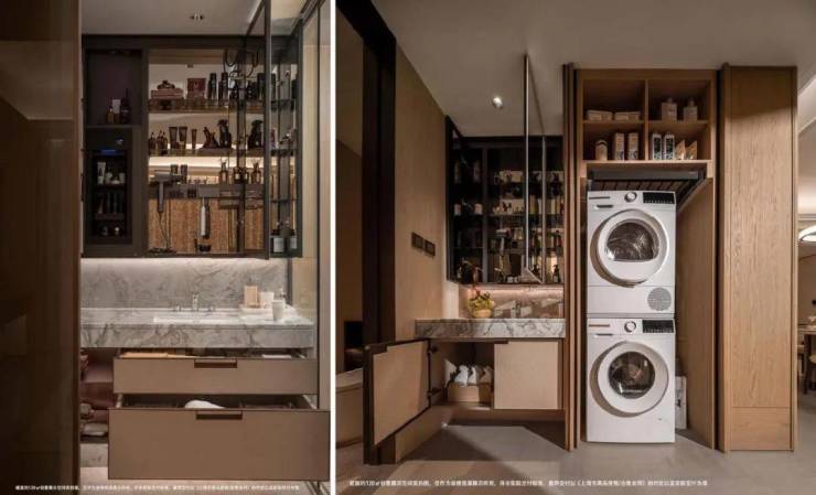 每个空间都提前规划好收纳,像净衣区,主客卫的镜柜布局等。