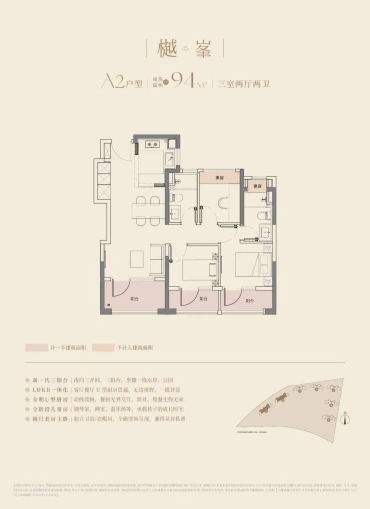 大华·望樾项目以创新理念,打造徐泾首个3.5代宅。主力户型涵盖约94-126㎡滨水公园美宅,空间设计上,采用全生命周期成长户型的理念,通过三阳台创新布局实现至高约19㎡空间拓展,为未来生活预留弹性改造可能;四开间全朝南搭配IMAX级全景窗,最大化引入自然光与日照;秉持“空间平权”理念,次卧可轻松适配双人床尺度,主卧则集合了约270°环景飘窗、独立卫浴系统及衣帽间,兼顾私密性与舒适性。