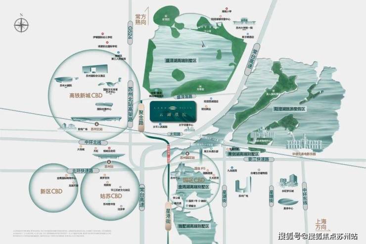 交通便捷:紧邻苏州高铁北站,通过中环北线、G524国道等多条交通干线,可快速到达苏州主城区及周边城市。阳澄西湖南隧道已通车,阳澄湖第三隧道预计2026年年底通车,未来轨交2号线与13号线规划站点距离项目也较近。