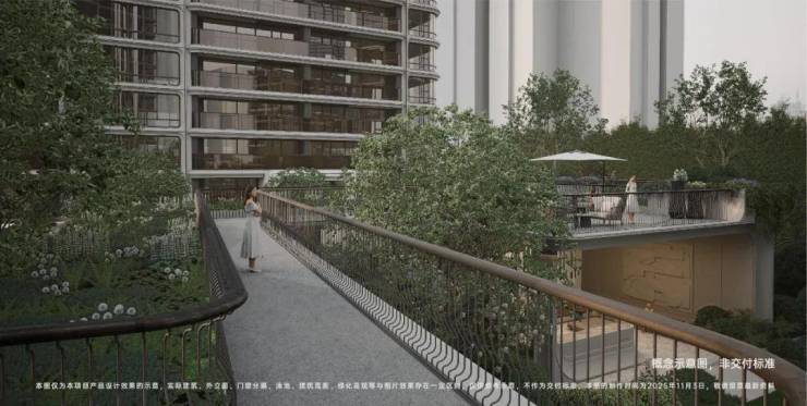 这种规划不仅保留了完整的地面草坪空间,避免了下沉设计对社区景观连续性的割裂,更让每一层景观都能拥有独立的视野与功能,实现 “无界通透” 的居住体验