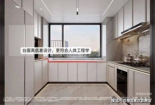 保利天奕也是上海新房市场里首个厨房采用人体工学高低台设计(大户型)的项目,将烹饪区设置低于水槽区,恰好契合烹饪时手臂自然下垂的舒适角度,让烹饪的动作更行云流水