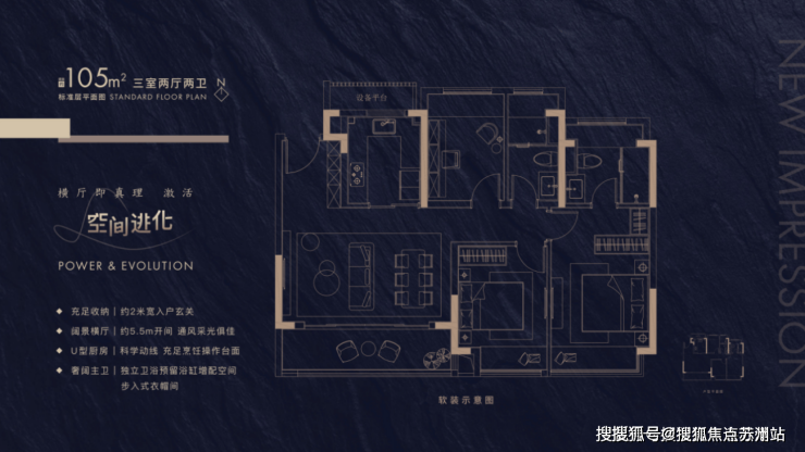 105㎡三居户型,总价170万起,适合首次购房的年轻家庭,享受科学城发展红利。