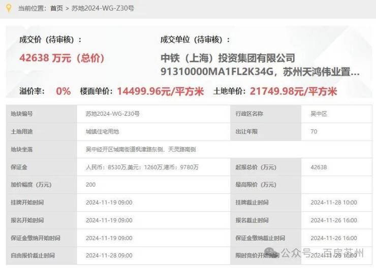 刚刚,苏地2024-WG-Z30号地块案名公布:中铁咏月台;