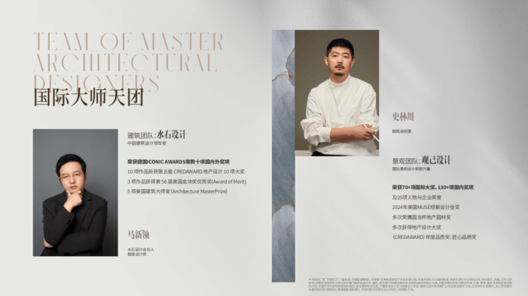 汇聚国际大师天团:建筑团队水石,景观团队观己,室内团队梁志天、琚宾、郑忠、CCD等,各擅胜场。