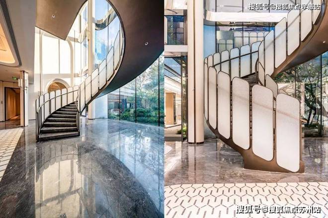 最后,豪宅的品质感还体现在了地上地下双归家大堂以及建筑的外立面方面!过去在豪宅项目才能看到的类似于“星空顶”地下车库坡道,使用了看来更加高级的香槟金色吊顶,并加上穹顶闪耀的“追光”坡道!精装的地下大堂,配置了自然的采光井以及专属等候区,如同高级酒店的首层大堂,极尽礼宾仪式!精装地上大堂,地面的石材拼花造型,墙面的石材背景,将静奢海派的艺术展现的淋漓尽致!