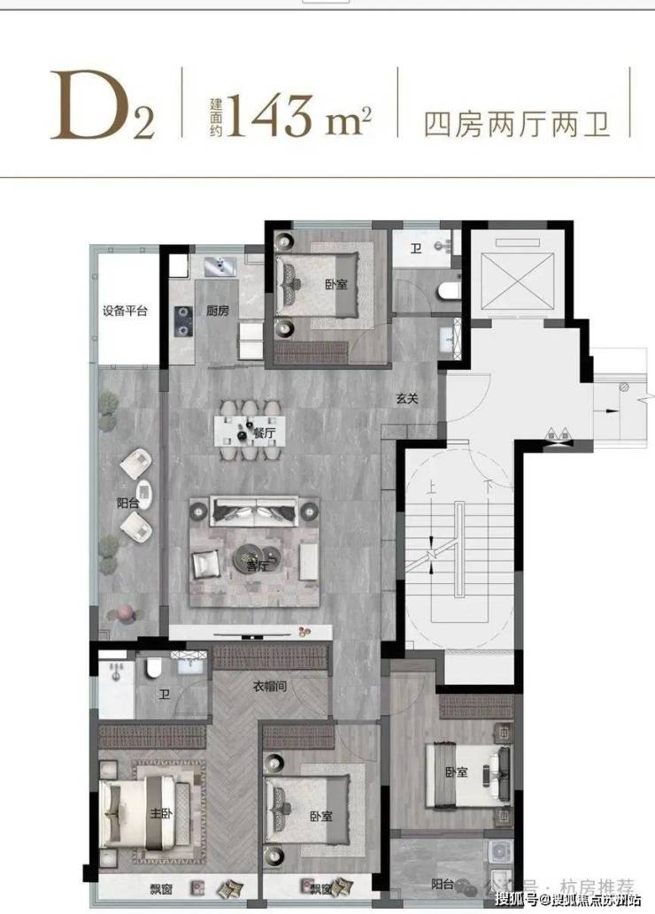如果说前面的户型更多的体现了实用性,那么143方的户型还实现了尊贵感。
