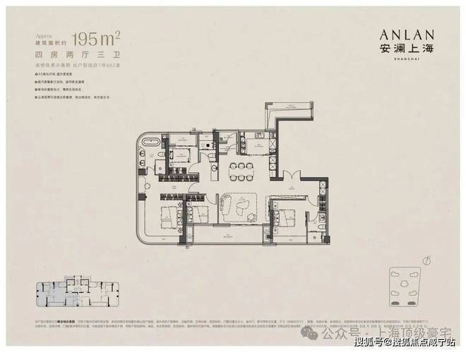 建面约195㎡,总价2700-3400万,折算单价约13.8-17.5万元/㎡