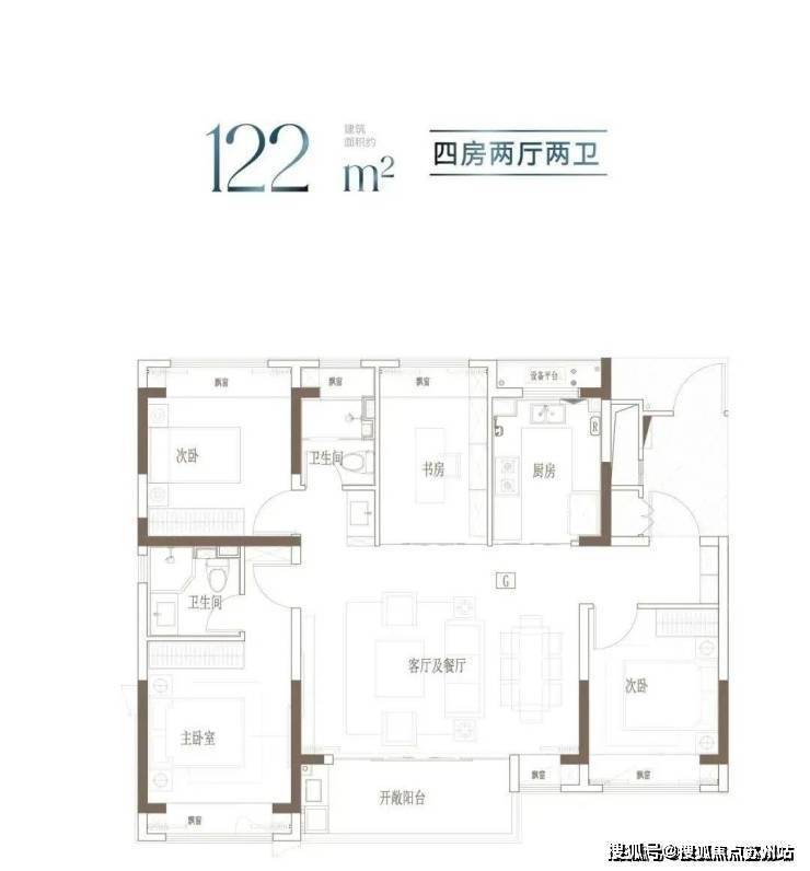 户型特点:宽境4房,拓宽空间尺度;大开间、进深短,通透采光;主卧独立卫浴,优雅随心的寝居感受。