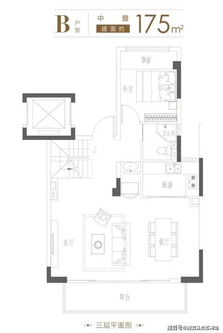 叠墅代表户型(建面约175㎡中叠)