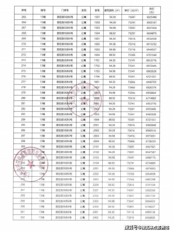 一房一价表