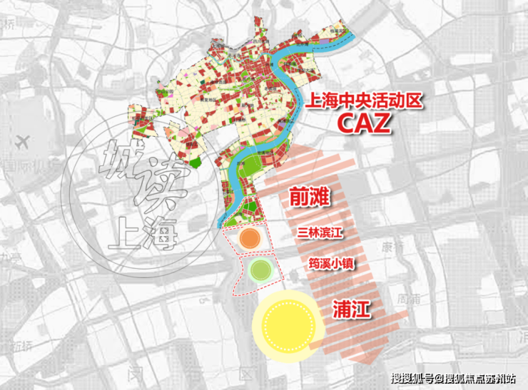 前滩前:前滩商务区十年大成,晋级上海中央活动区(CAZ),并沿着“三林滨江—筠溪小镇—浦江”滨江带发展。