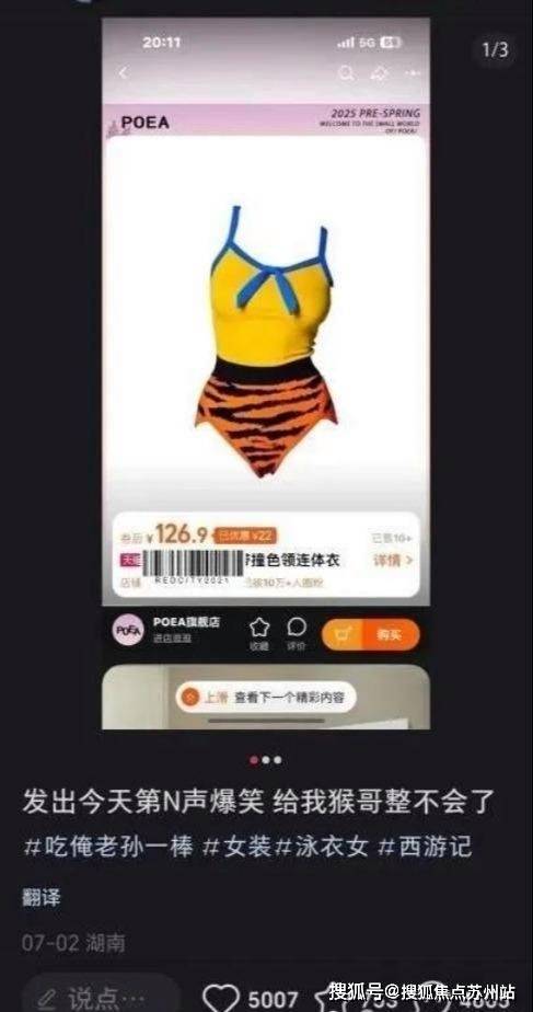 近日,有网友发图文称,网上有一款泳衣设计得跟齐天大圣孙悟空的外衣很相似,感觉非常可爱,也很搞笑。此事引起网友热议。不少网友表示,衣服设计跟孙悟空的外套颜色一样,就是稍微有点改变,感觉是“同款”,很不错,很想试试。