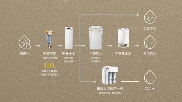 ✔全链路净水与软水系统:从自来水进入楼栋起,便通过医用级不锈钢过滤系统处理;连地暖管道使用的都是软水.