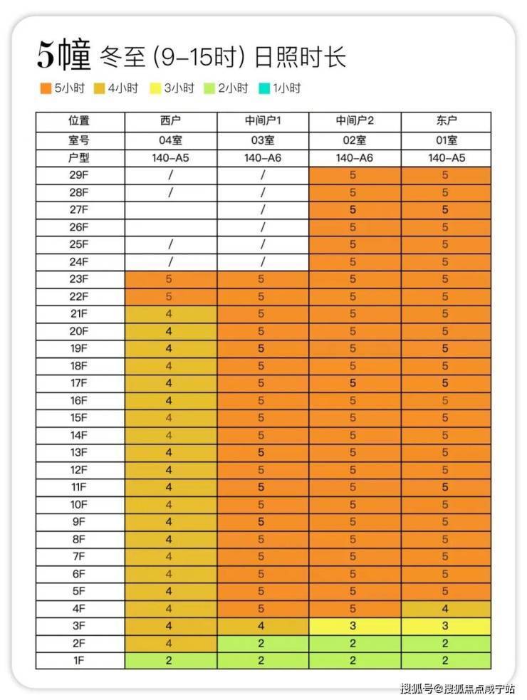 下图是小胖建筑师对5号楼进行的日照测算,即使是冬至时分,除了极低区,几乎所有楼层都能保障4-5个小时的充足阳光,这是市区绝大多数新房无法想象的事情!
