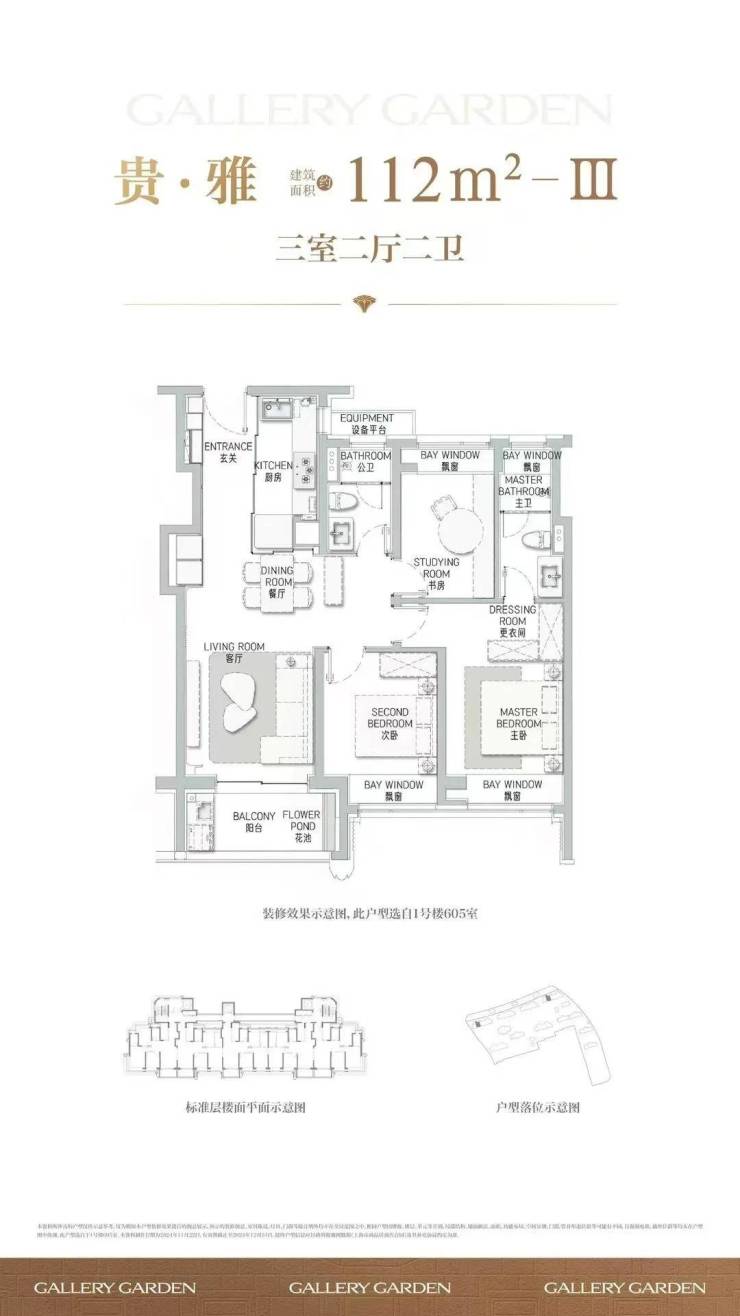 项目舍弃了传统逼仄的百平三房,将最小面积提升到了建面约112㎡,而这12个平方的提升,让整体户型的空间尺度感达到了新的高度。