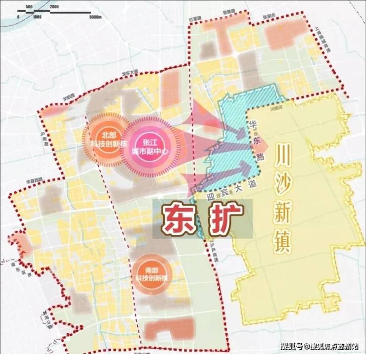 “川沙2035整体规划”中,川沙发展目标为:“形成以国际交往、旅游度假、历史文化及生态休闲为主导的浦东中部地区活力高地。”这恰好川沙与张江科学城在向东拓、国际旅游度假区在向东扩、东方枢纽在建三大动作遥相呼应。
