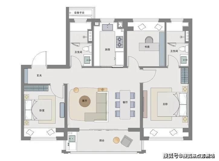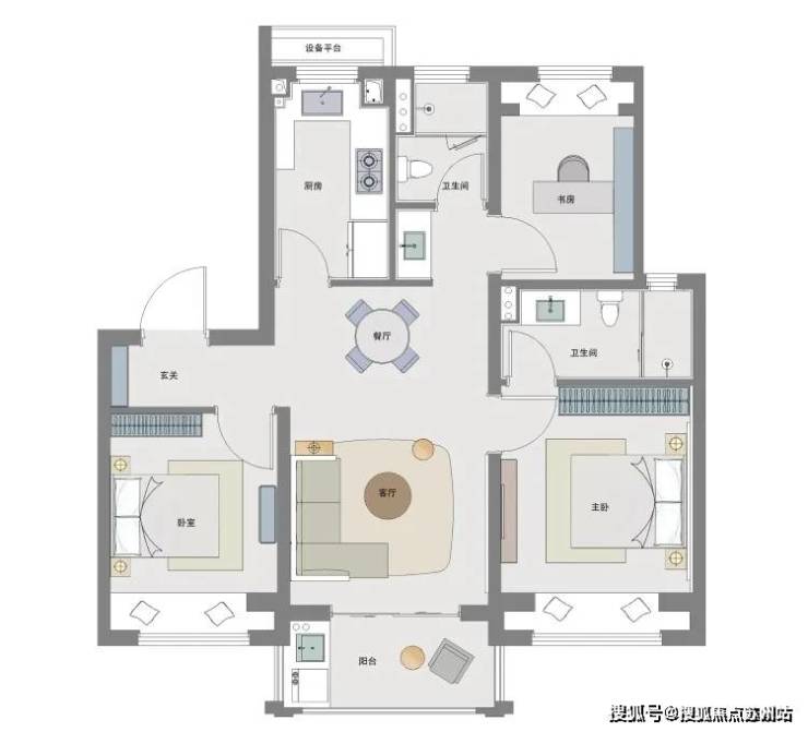 1、建面约92㎡做到3房2厅2卫,控制总价的同时将功能性做到了更大化