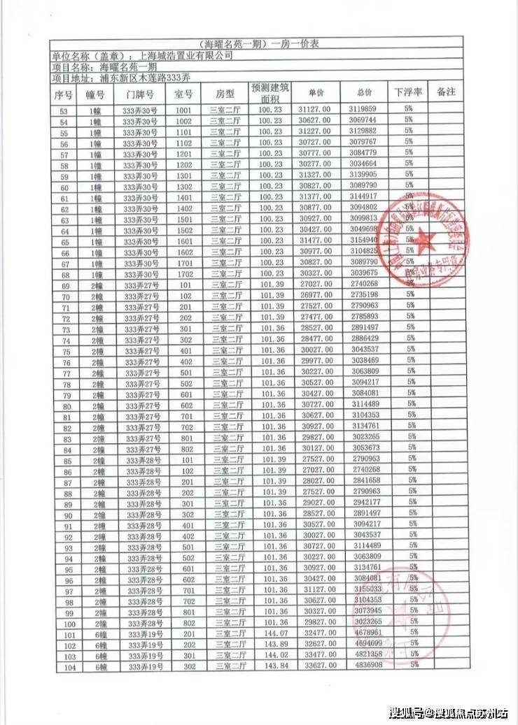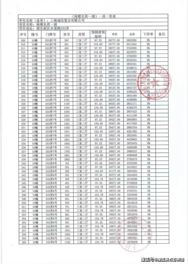 一房一价表