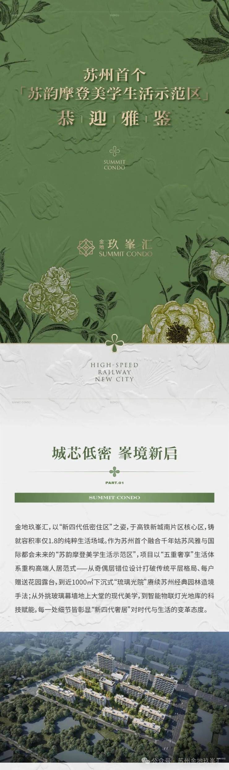 苏州高铁新城,一场关于东方美学与现代人居的对话即将开启。备受瞩目的新四代低密住区——金地玖峯汇,以“高铁新城低密奢居典范”为定位,将城芯占位的稀缺性、低密住区的舒适度与苏韵摩登的生活美学深度融合,为追求高品质生活的雅仕人群,献上一座超越期待的人居作品,“苏韵摩登”美学示范区将于2026月1月10日正式亮相。这不仅是一座四代宅新规人居社区的预呈,更是一场融合千年姑苏风雅与国际都会未来的全景预演。