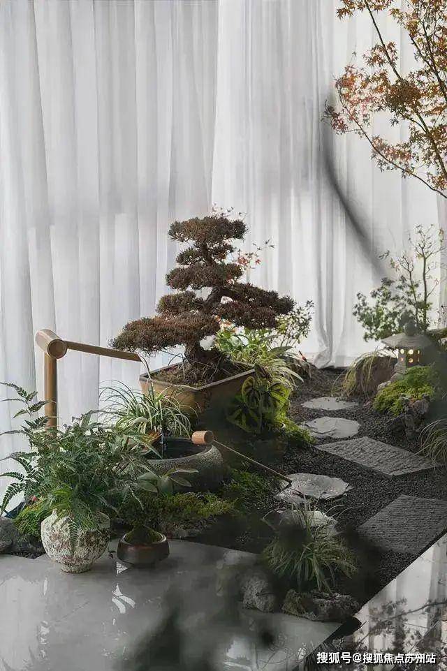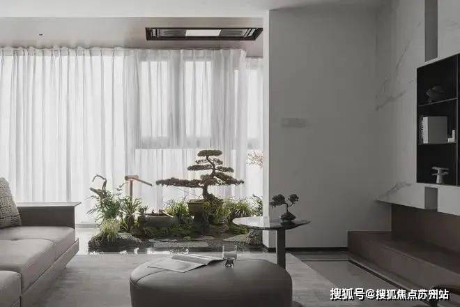 苏州仁恒澜庭雅致售楼处电话☎:400-8123-664(预约看房热线)超大落地窗旁加上业主喜爱的自然元素,做好防水即使活水也不怕。水声窸窸窣窣,当阳光洒下来,波光粼粼。绿植黄叶,沙中板砾,宛如缩小版林间小路,在室内也依然可以生机勃勃。