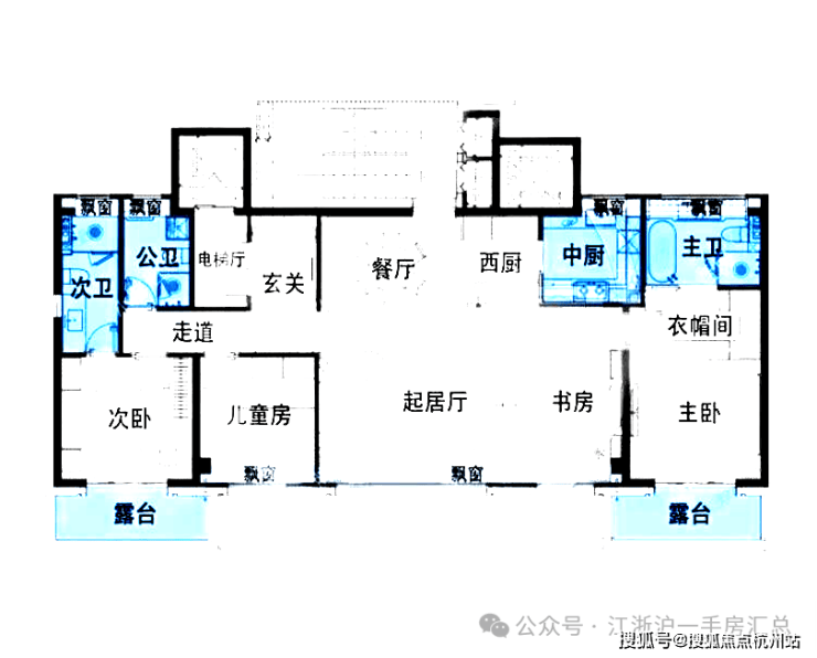 四层洋房户型:建面约170m²