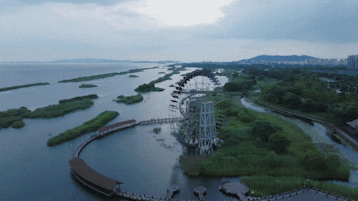 整个项目还和小区外的太湖水景、河道景观以及绿色植被进行有机融合,你会发现小区和外界的边界感也消弭了,从天空俯瞰,非常唯美,甚至有种仙境的既视感。