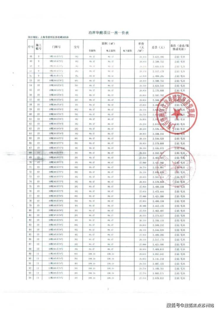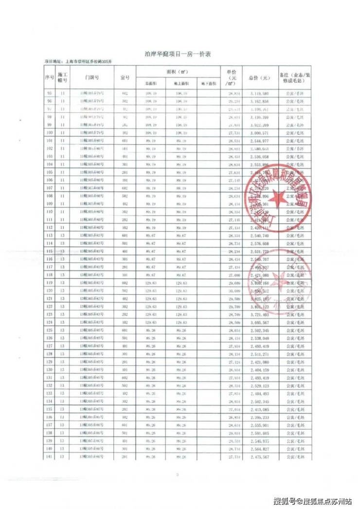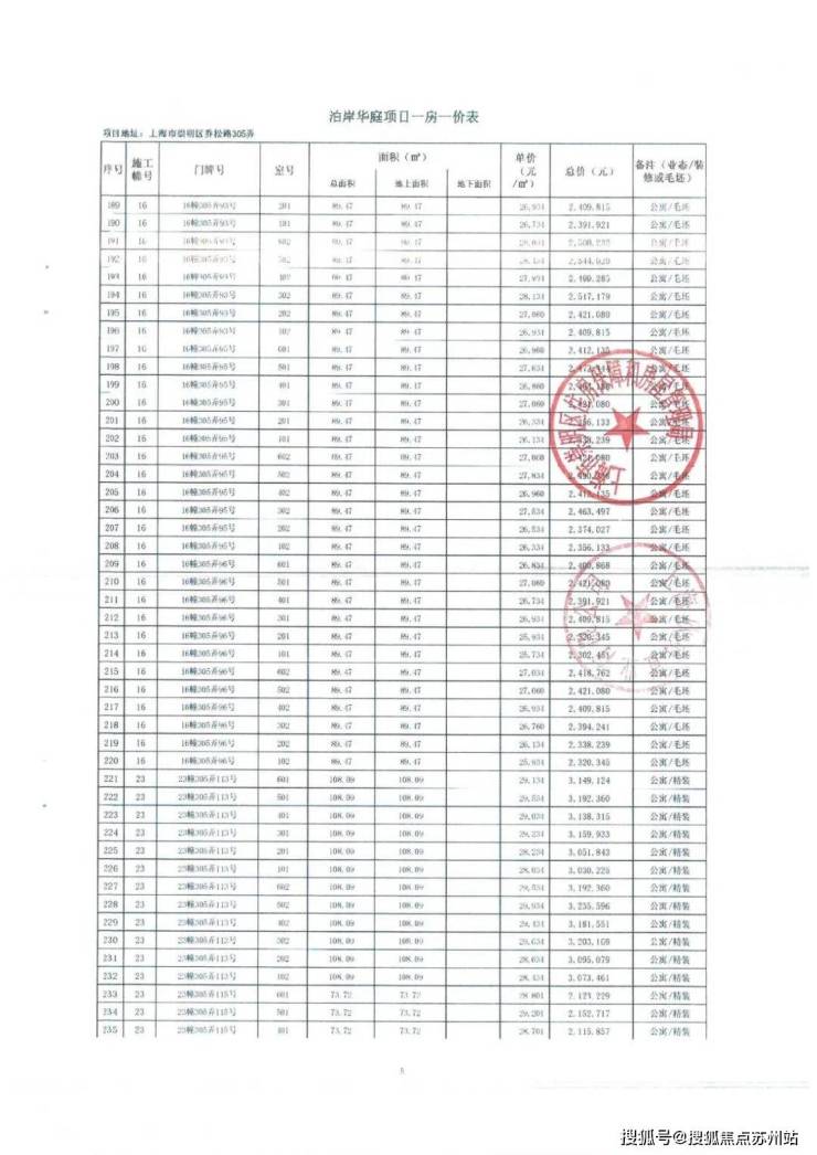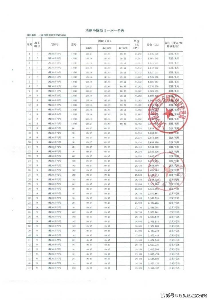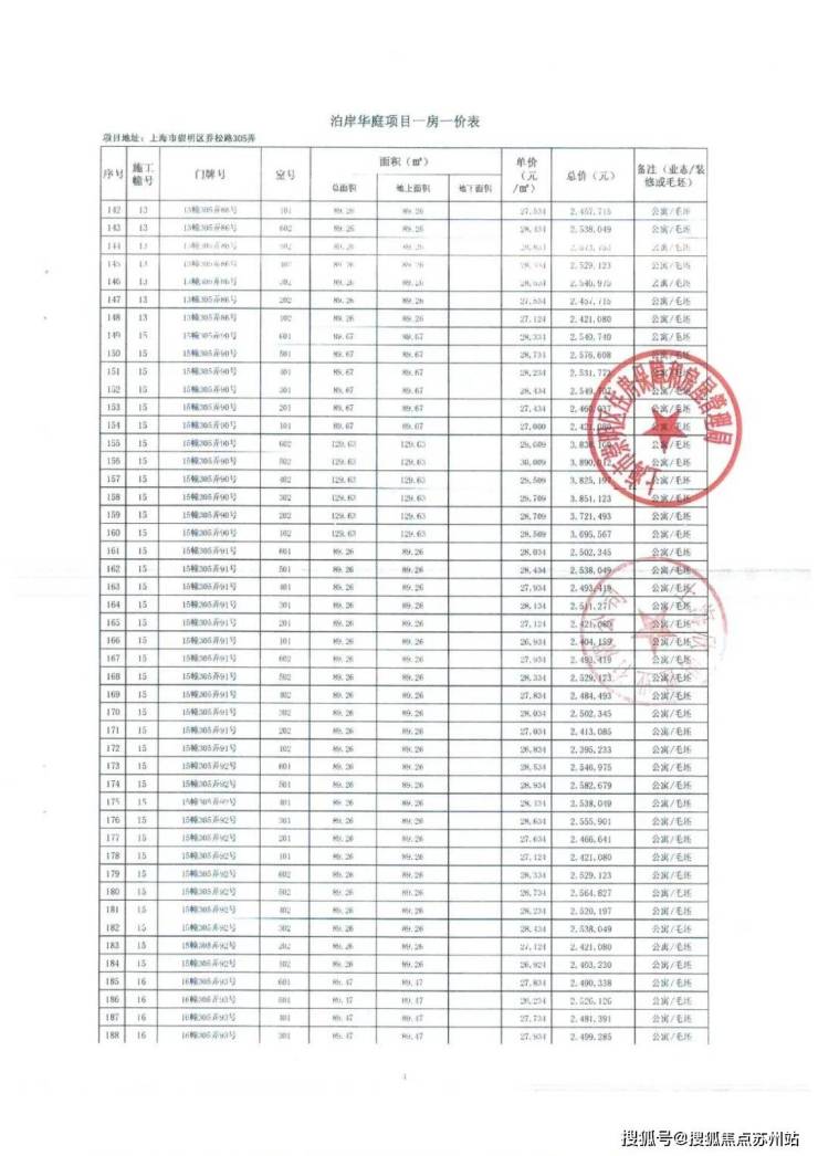 一房一价表