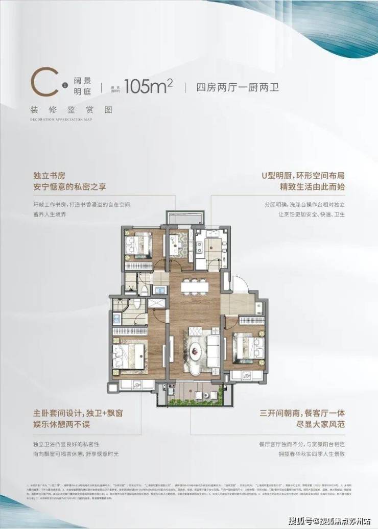约127㎡户型是洋房的旗舰户型,采用了奢华的四开间设计,户型布局三卧室朝南,贴合当地的生活习惯主卧采用全套房设计,同时与主卧相邻的次卧室可以根据小业主的自身需要,同主卧室灵活合并。
