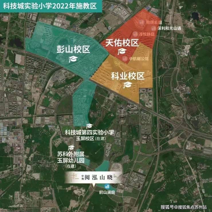 中海阅泓山晓北侧的苏科外附属玉屏幼儿园;科技城第四实验小学(在建);中学有新区实验中学科技城校区。另外除了公立的学校外板块内还有高端私立学校科技城外国语学校和伊顿国际学校为板块内的业主提供了更高端的教育需求。