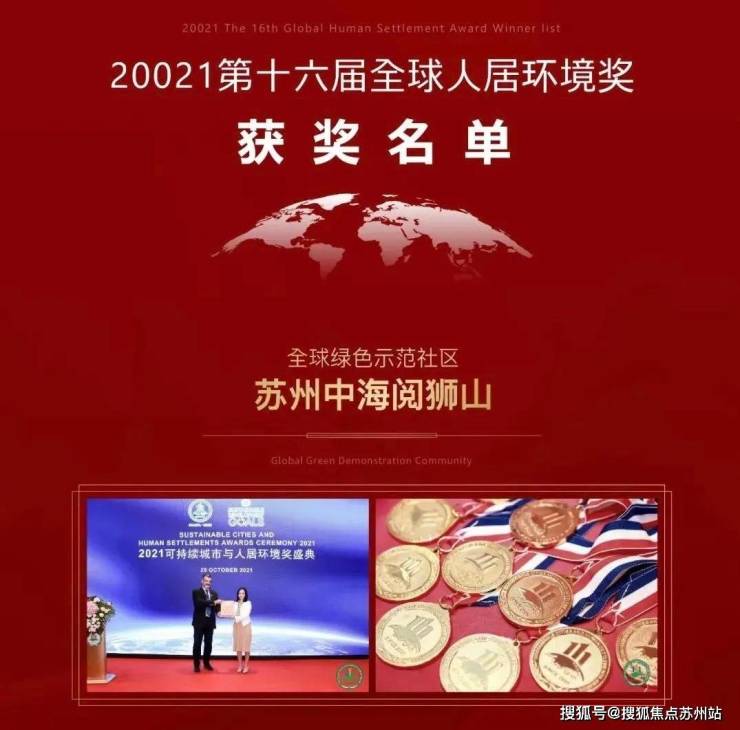 中海地产苏州公司继2008年中海御湖熙岸首获全球人居环境最佳社区奖之后,时隔十三年再度获得 全球人居环境奖。