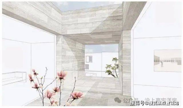 外冷内热的碉堡合院,清水混凝土外墙如现代堡垒,内部围合中式中庭,360°庭院环绕。