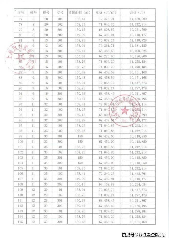 本次入市房源152套一房一价如下