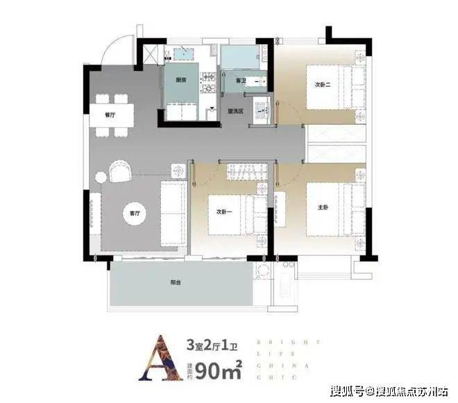建面约90平三房一卫总价约170-190万