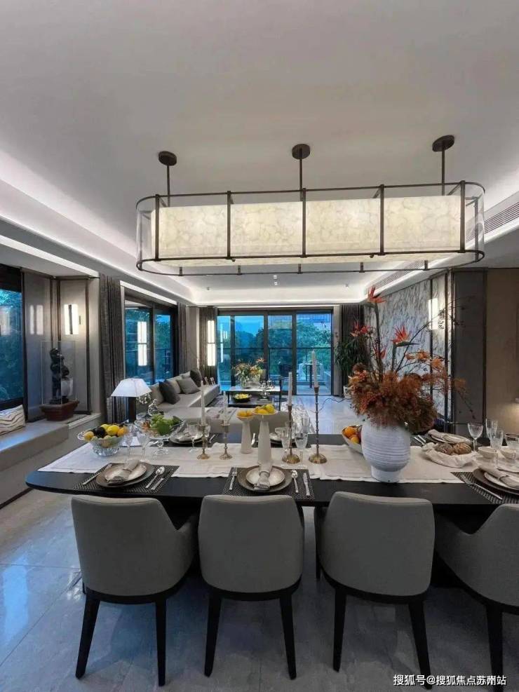 纵深超长的客餐厅,整个客厅做的是客餐厅一体化的设计,客厅空间足够大;两边落地窗,采光无敌视野通透
