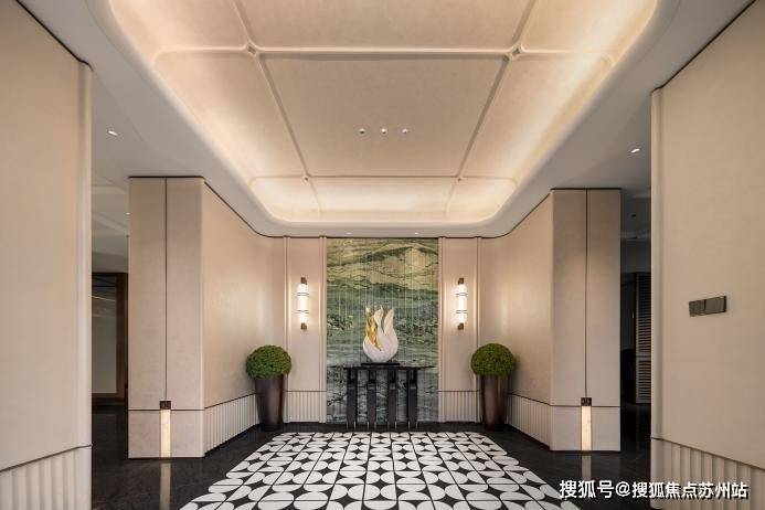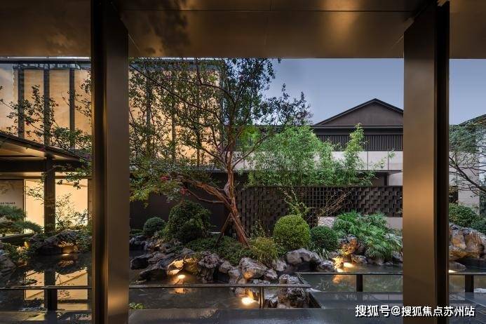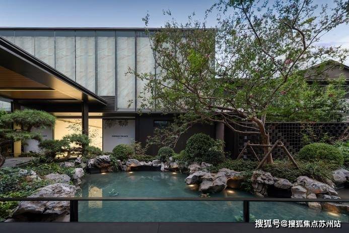 项目遵循 “三进礼序”,看似是对传统王府礼制的借鉴,实则暗合苏州人 “归家即入画” 的生活期待。一进 “山水迎客”,灵动的水景搭配低矮的绿植,没有刻意的堆砌,却有 “开门见山、临水而居” 的雅致,恰如苏州古宅前 “门前有水,屋后有山” 的格局;二进 “林荫步道”,并非简单种植新树,而是特意移栽百年古树 —— 这些历经岁月的树木,枝干虬劲、叶片繁茂,不仅带来 “一步一景” 的层次感,更让居住者能触摸到 “时光的温度”,这份对 “老物件” 的珍视,与苏州人偏爱 “老木家具、古瓷摆件” 的情怀不谋而合;三进 “宅间庭院”,选用进口石材打造小品,石材的肌理与周围的花木相映成趣,既有现代设计的简洁,又保留了苏州园林 “虽由人作,宛自天开” 的精髓。