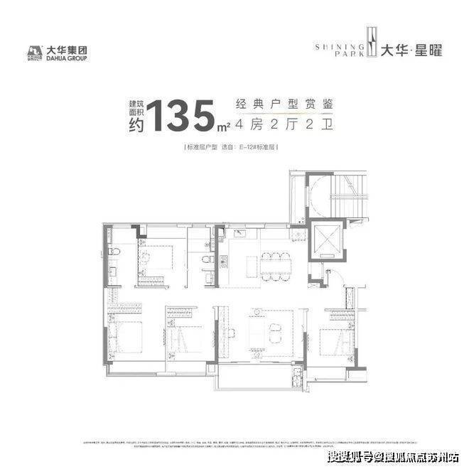 建面约120㎡的产品,市面上大多都是3房但大华星曜做了4房的设计,实用性非常出色。
