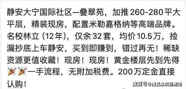 最新消息:接群友爆料!大宁明园森林都市·叠翠苑仍有房源,32套大平层,建面约260-280㎡,均价10.5万/㎡,精装现房交付,配置米勒嘉格纳等高端品牌,定金200万可直接认购!