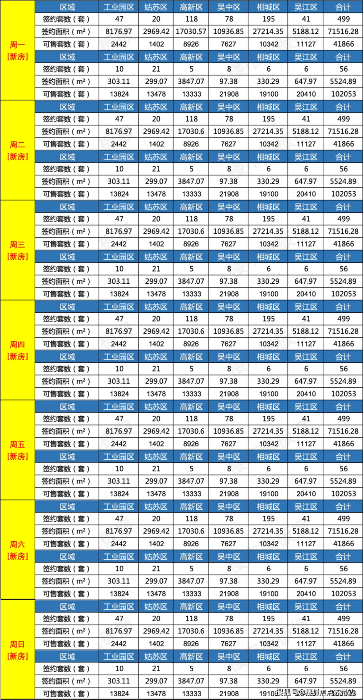 新房非住宅共网签392套;工业园区70套;姑苏区147套;高新区35套;吴中区56套;相城区42套;吴江区42套;