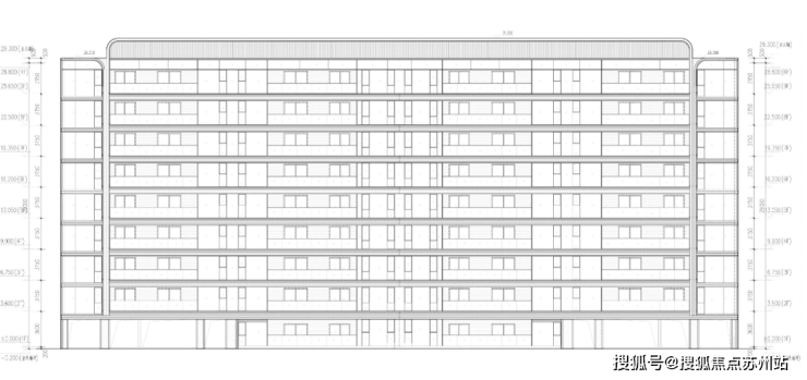 洋房南立面图:非常流畅的造型,首层高3.6米,很多楼栋有架空设计,其余层高3.15米