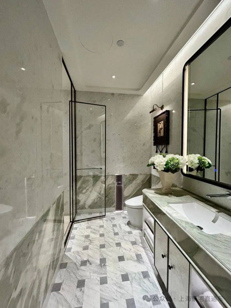 深铜色的栏杆和扶手融合传统与现代语汇,演变出一种当代型态,与现代白色洞石相映成趣,营造出优雅纯粹的意境。
