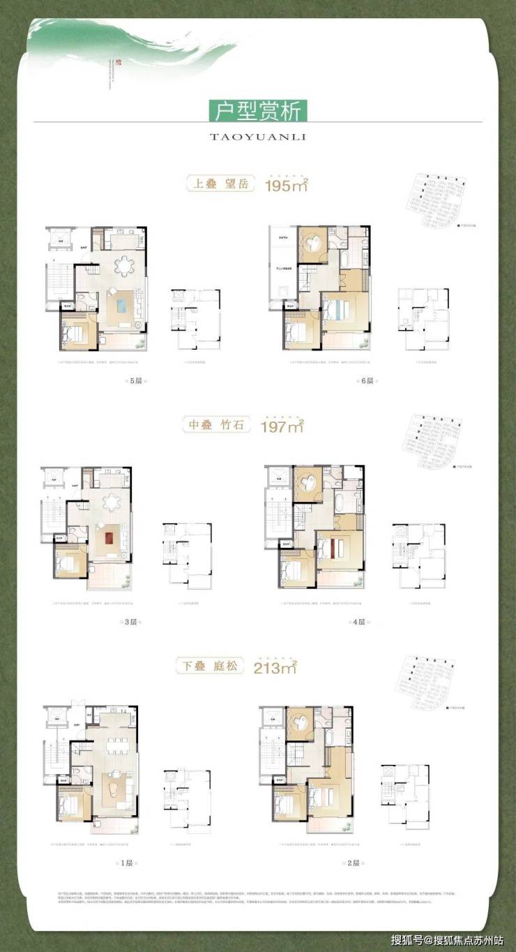 建筑面积约195-213㎡的宋风叠加,在继承与发扬传统中式美学的基础上,以现代的审美眼光,将宋文化美学与现代叠墅巧妙融合。
