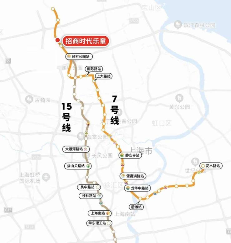 在7号线潘广路站坐2站就能到顾村公园站,换乘15号线能便捷到达长风、长宁、漕河泾,甚至紫竹高新区等多个沪上高能级商务区。