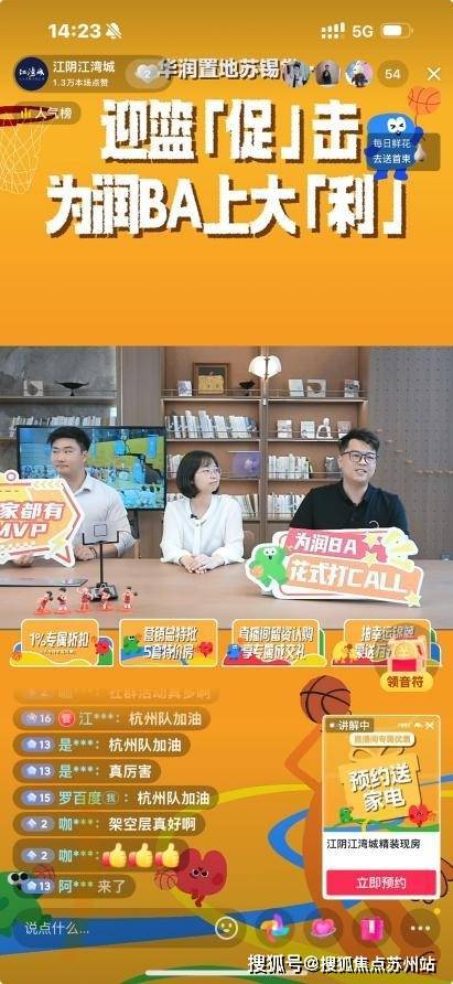 线上直播方面,围绕总决赛精心打造2场专题直播,总时长达到7小时。节目采用“坐播+实景走播”相结合的形式,全方位展示项目实景与社区生活场景,邀请业主代表、社群主理人及项目负责人参与对话,分享篮球文化与生活故事,并推出专属购房权益。两场直播累计曝光超12万次,共吸引23389人次观看,有效实现了品牌价值传播与精准获客的结合。