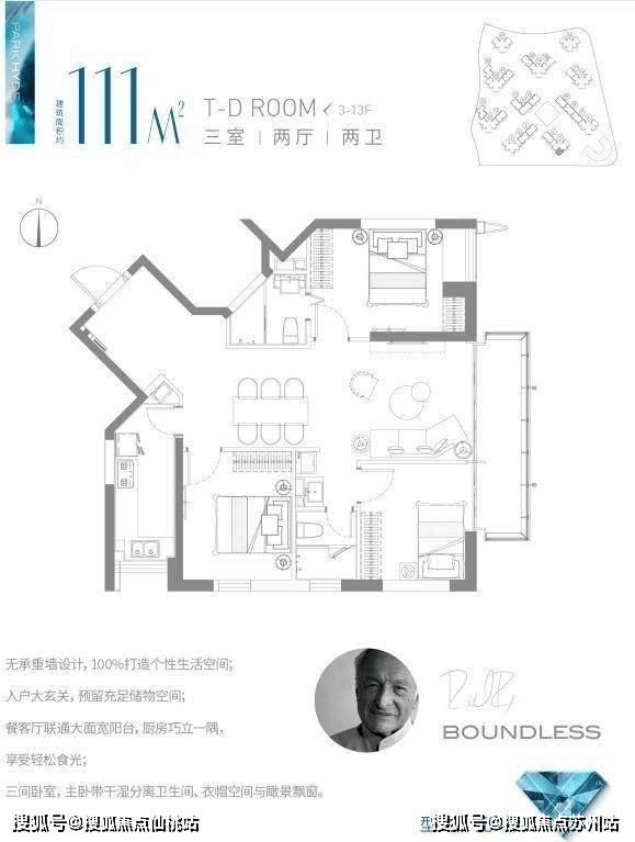 建面约111㎡3房,面积进一步升级,生活更显从容。超大采光面,令室内充满阳光。